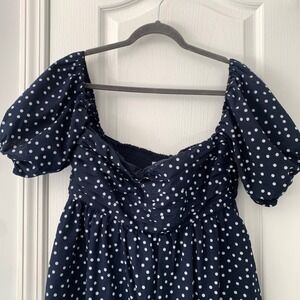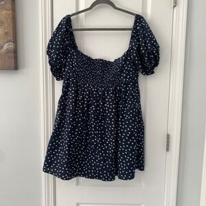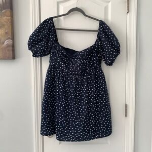 Abercrombie & Fitch Navy Polka Dot Puff Sleeve Smocked Mini Dress Women Large