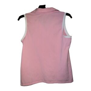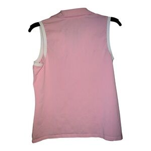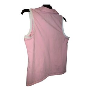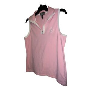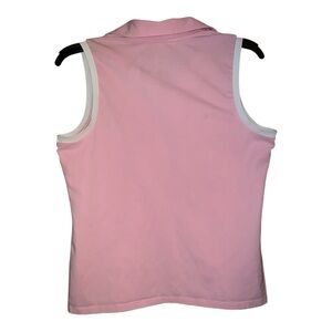 Light pink tank with a zip front. Embroidered logo on chest. Perfect for casual wear.