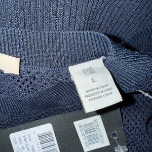 Knit circle skirt in deep navy. Flared hem for movement. Smooth knit fabric with subtle texture. Pairs well with boots or heels.