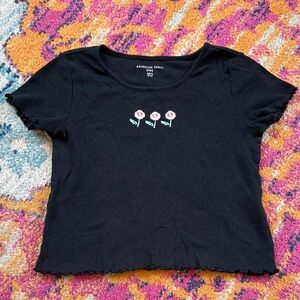 American Eagle Outfitters Charcoal Ribbed Tee