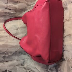 Elegant fuchsia leather hobo bag by Coach. Features a chic design with a spacious interior. Some wear on bottom corners (shown in pictures) Some ink stains on the small inside pocket (picture)