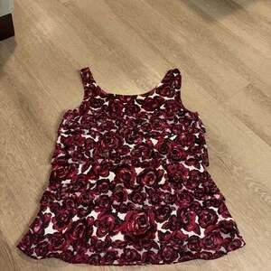 White House Black Market Red Rose Floral Ruffle Layered Sleeveless Blouse Top