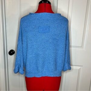 Illa Illa Cuffed Short Sleeve Oversized Cropped V Neck Knit Sweater Blue Women M