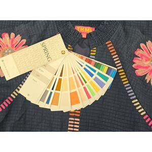 Color palette: Cool navy base (Summer palette) with Spring-leaning embroidery pops