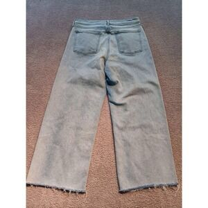 Keywords: Old Navy wide leg, high rise, Sky Hi, Sky-Hi, light wash denim, raw hem, cropped jeans, secret smooth pockets, size 12, women's jeans, vintage look, straight wide leg, frayed hem