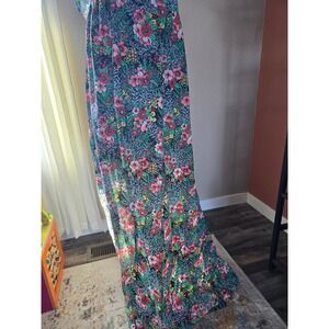 Vintage 1970s floral maxi dress from the brand Queen's Way. Beautiful floral print! Tie shoulders. I am not sure if I had it backwards on the mannequin or not, to be honest! One side is scrunchy, I wasn't sure if that was the front or the back. Great condition! Tagged size medium.