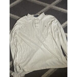 Polo Ralph Lauren Mens Long Sleeve White Cotton Polo Shirt Size L Gray Pony