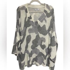 Mud Pie Scarlett Camo Ribbon Knit Sweater Size S/M