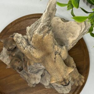 Elegant mountain lion family sculpture featuring a mother and her cubs. Crafted in rich brown and tan tones, this piece adds a touch of nature to your home decor.