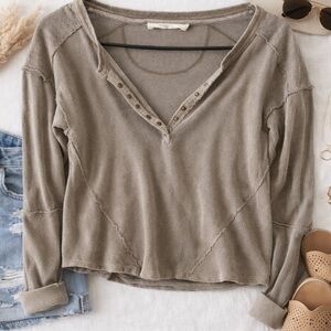 We The Free Free People XS Distressed Raw Edge Henley Top Taupe Boho