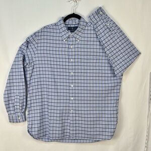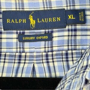 Ralph Lauren Luxury Oxford Men's XL White & Blue Checkered Plaid Shirt Excellent