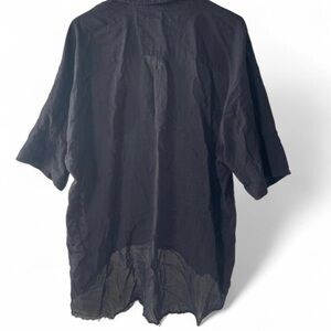 Lightweight sheer black button-up. Short sleeves with a subtle pocket detail. Soft, drapey fabric. Easy to layer and style.