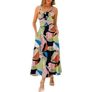 Women's Multi Color Floral Adjustable Spaghetti Strap Floral Beach Long Maxi