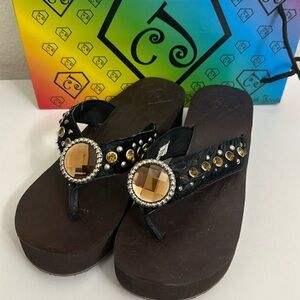 **NEW in BOX** Cowgirl Jewels Horse Hair Wedge Flip Flops