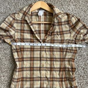 Philippe Adec Vintage Plaid Mini Dress Casual Brown Tan Small 90s Retro