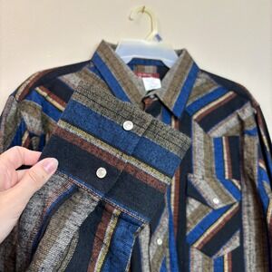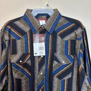 NWT Vintage Flannel Wrangler Western Wear Pearl Snap Shirt Size 2XL Big Striped