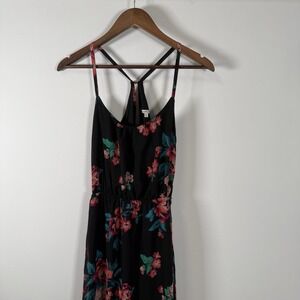 Charlotte Russe Women's Maxi Dress Sheer Lined Black Flowers Cut Outs Size Med