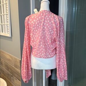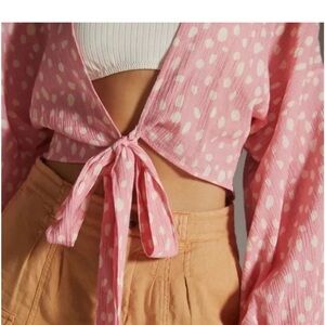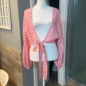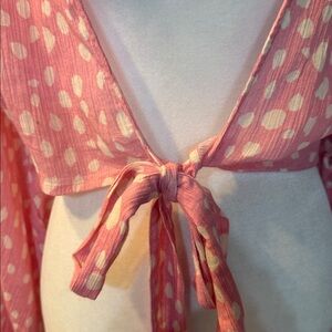 Anthropologie Pink and White Polkadot Tie Front Kimono NWT