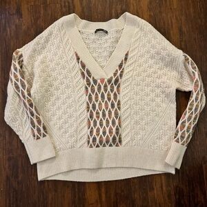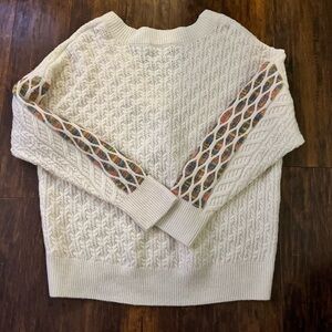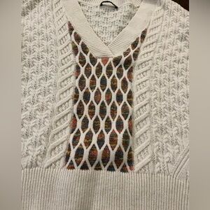 Layer on this cute sweater featuring a knit pattern at the sleeves.