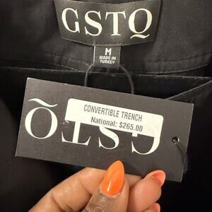 NWT $265 GSTQ Women's M Convertible Trench Black Size Medium