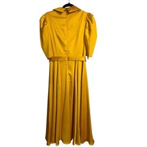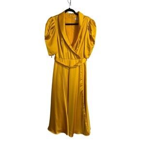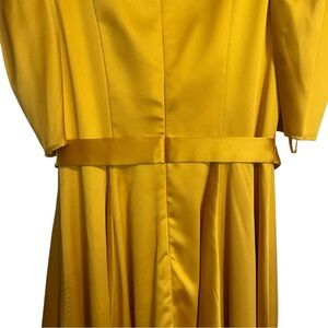 Mac Duggal Satin Lapel Puff Sleeve Tea Length Dress