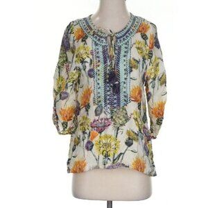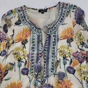 Tolani Floral Boho Tunic Top Womens Size Small Tassel Tie V Neck Sheer India