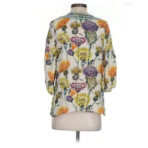 🌼 This beautiful Tolani tunic top features a vibrant botanical floral print with boho inspired embroidery and tassel ties at the neckline. Lightweight and flowy with a soft lining, it has an effortless relaxed silhouette that pairs perfectly with jeans, shorts, or linen pants. A lovely statement piece with artistic detailing that Tolani is known for.✨ Details • Brand: Tolani • Size: Womens Small • Color: Cream base with multicolor floral print • V neck with tassel tie detail • Embroidered front panel • Lightweight sheer shell with lining • 100% Viscose shell • 100% Polyester lining • Dry clean only • Good pre owned condition