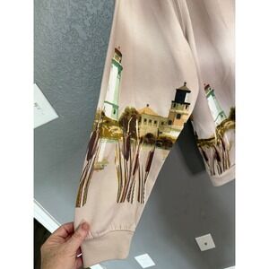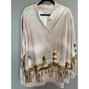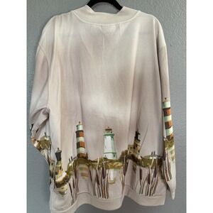 VTG Blair Fleece Sweatshirt Cardigan 2XL Tan Lighthouse Coastal Grandma Oversize