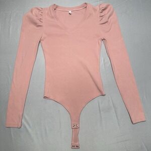 Reoria Dusty Rose Body Suit Small Leg O Mutton Sleeve Victorian Chic Ribbed Fem