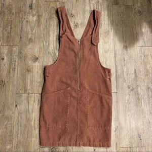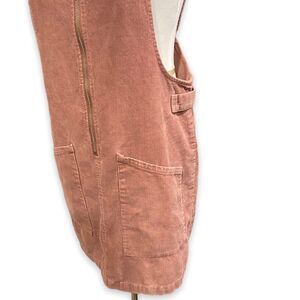Corduroy Pinafore Dusty Mauve Pink Zip Overall Midi Dress