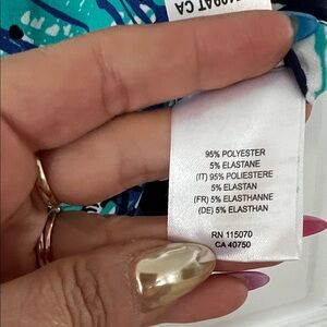 Nina Leonard Abstract Blue and Teal Blouse