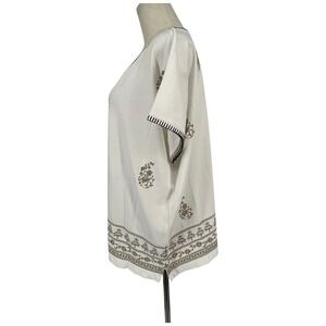 Pure Jill Embroidered Buttoned V Neck Tee White Multi Floral Print Cotton PL