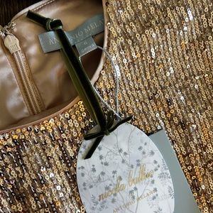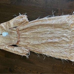 ANTONIO MELANI Rose Gold Sequin Feather Maxi Dress