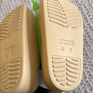 CROCS Dylan platform clogs. Women Slip-on design with cushioned footbed. Lightweight and easy to clean. Versatile tan-beige shade pairs with many outfits.