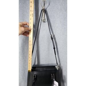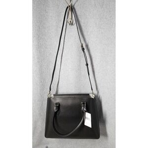 Double top handles and removable/adjustable crossbody strap with up to 14 in drop (strap shown in photos)