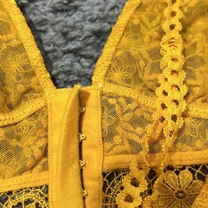 Free People Ella Lace Longline Bralette Yellow Gold Size small