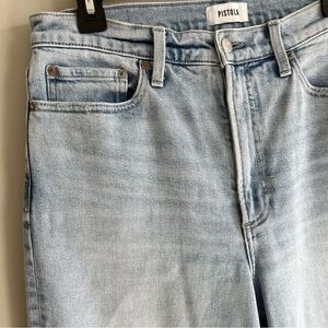Pistola Lana raw hem high waisted cropped wide leg jeans light wash size 30