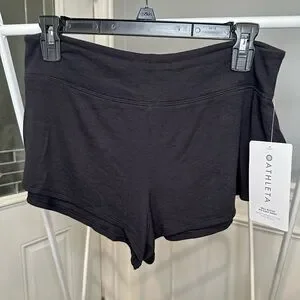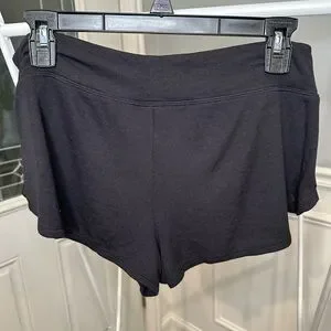Comfortable black ribbed sleep shorts by Athleta. There is a gold/brown line through ‘Athleta’ on the inside tag - no damage to shorts.