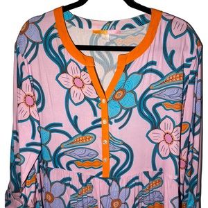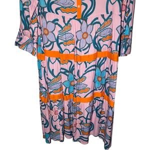Briton Court Women's Large Tiered Monet Garden Midi Dress Scarlett Floral