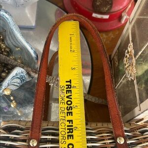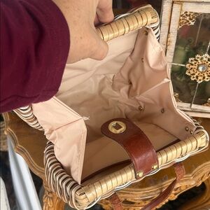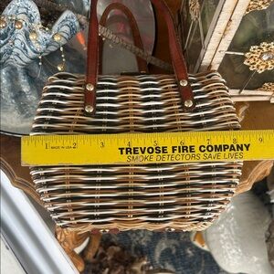 Vintage Brown and Tan Woven Wicker & Leather Handbag