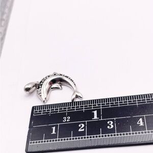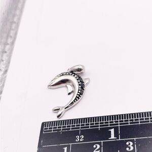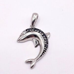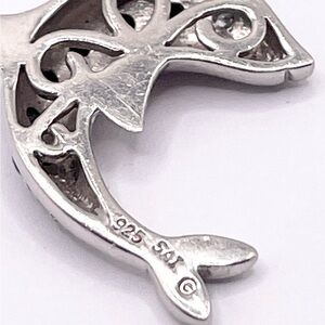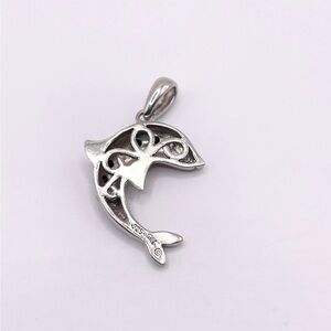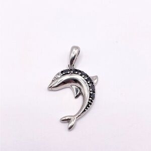 Blue sapphire gemstones 925 stamped sterling silver dolphin pendant. Good condition. Signed SAI.