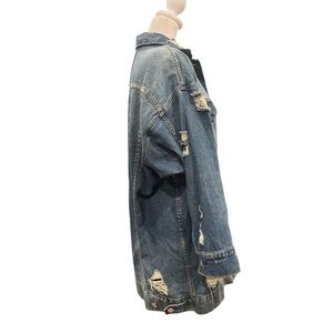 Oversized Distressed Denim Shacket Jacket Indie Sleaze Grunge Festival S