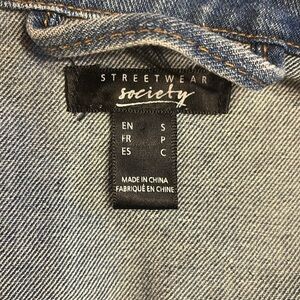 Distressing throughout gives this piece a worn-in vintage streetwear vibe. Features classic button front closure, chest tab pockets, and functional waist pockets. The oversized cut creates an effortless relaxed look typical of indie sleaze / grunge styling.