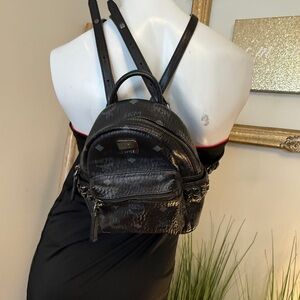 MCM AUTHENTIC Stark Bebe Boo Side Studs Backpack In Visetos Black