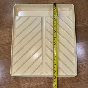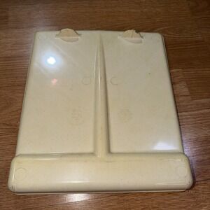 The Vintage Anchor Hocking MicroWare Microwave Bacon Rack Cooker Tray PM 465-TI is a microwave cooking gadget designed for cooking bacon or other meats in the microwave. Made of beige plastic with a 10-inch diameter and 2-inch height, this tray is dishwasher safe and features a convenient design for easy cooking. With its United States origin and model number PM 469-TI, this microwave cooker offers a unique and practical addition to any kitchen.0836