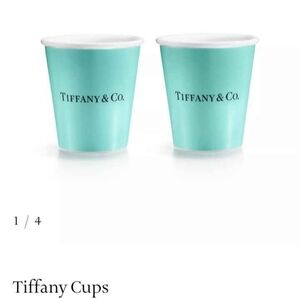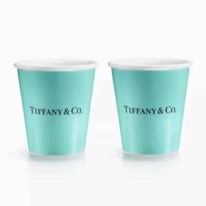 Chic fine bone china 2 cups and 1 pitcher by Tiffany & Co. in a stunning aqua hue. one box included. Ideal for stylish gatherings or elegant bedside.