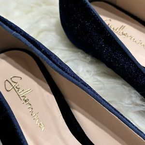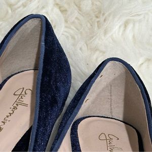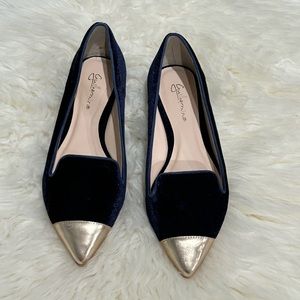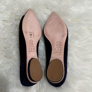 Guilhermina Anthropologie Blue Velvet Gold Toe Flats Size 6