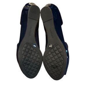 I don’t think I ever wore them. Really cute. Matte finish in front and black patent leather at the heel area. Open side view and wedge heel is approximately 1 1/2”. Leather upper/Leather lining.