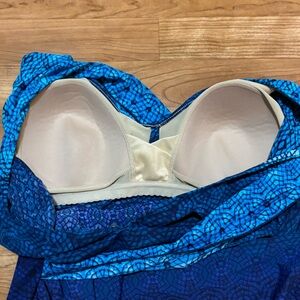 Lands End One Piece Swimsuit SlenderSuit Tummy Control Beachy Coastal Blue 18P