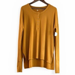 SO Brand Mustard Yellow Ribbed Henley Long Sleeve Hi-Low Top NWT S